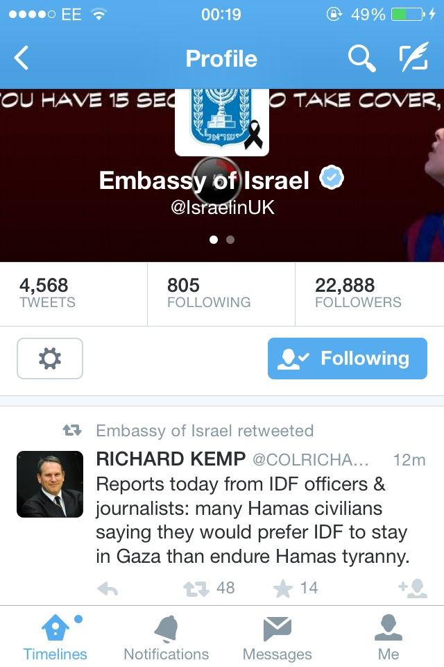Israeli embassy in London refers to Palestinian civilians as "Hamas civilians"